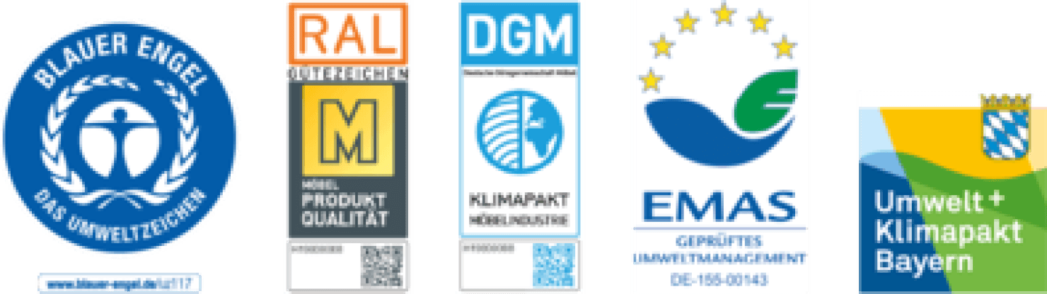 Seit 2011 ist die gesamte himolla-Polstermöbelkollektion mit dem Blauen Engel für emissionsarme Polstermöbel und dem Umweltzeichen DE-UZ 117 zertifiziert.